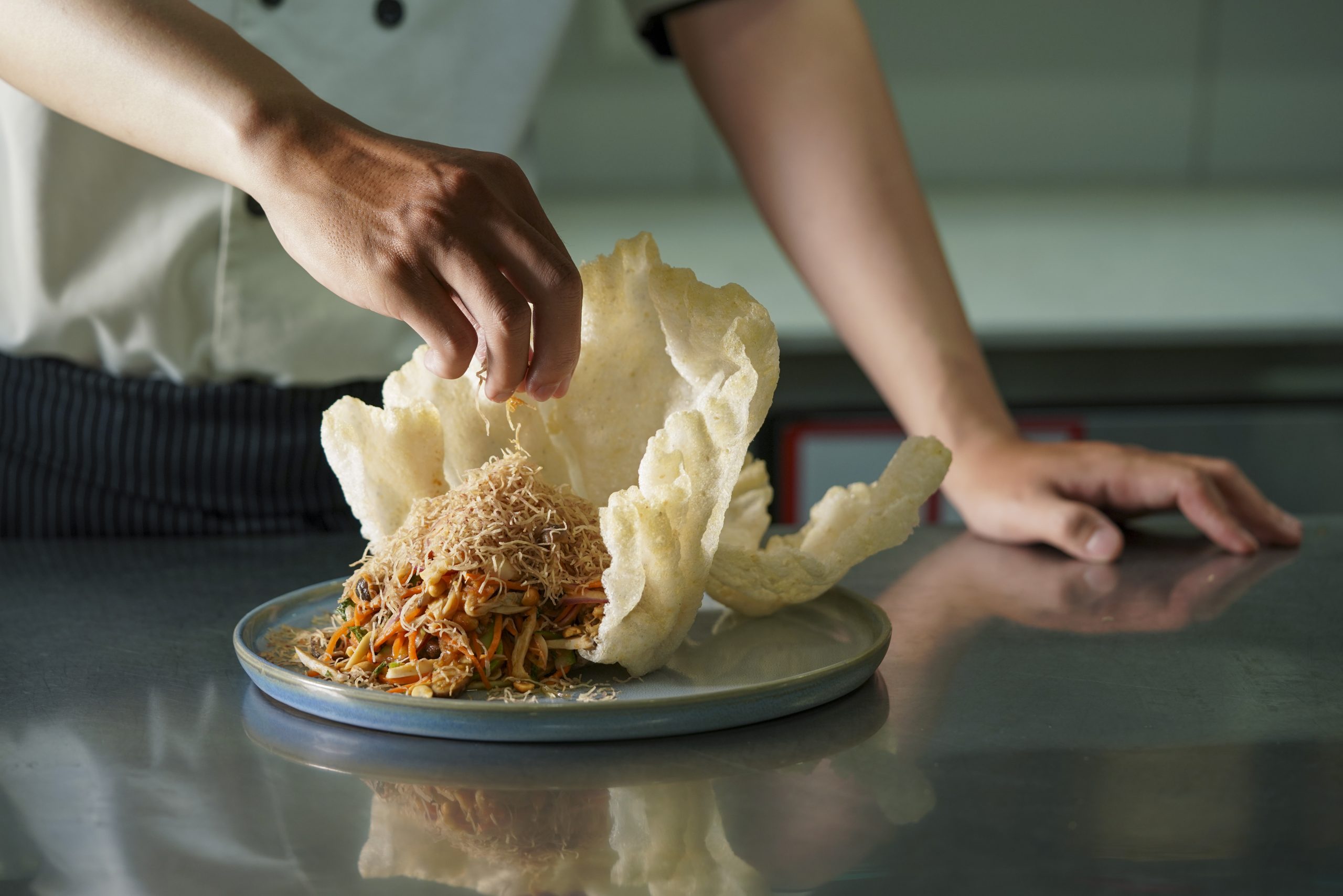Kỹ thuật nấu của món Á được sử dụng trong những món thuần Việt như canh chua Nam bộ, gỏi bưởi, phở cuốn hay cháo nấm hạt sen; trong khi sự chắt lọc của ẩm thực Âu lại hiện diện trong các món như mì ống nhồi paccheri đút lò, lasagna cà tím sốt cà chua… Dù là món nào, tất cả đều đi chung một hướng: nhẹ nhàng, tinh tế và vừa vị.